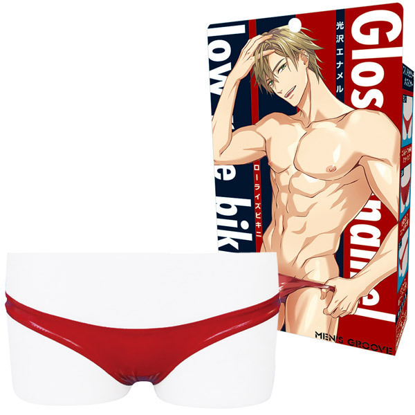 際どいラインで魅了するエナメル調のローライズビキニ(赤)。